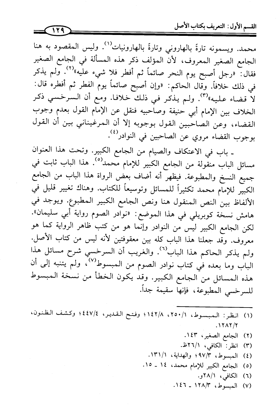 (¬1) انظر: المبسوط، 1/ 250، 8/ 142؛ وفتح القدير، 4/ 447؛ وكشف الظنون، 2/ 1282.