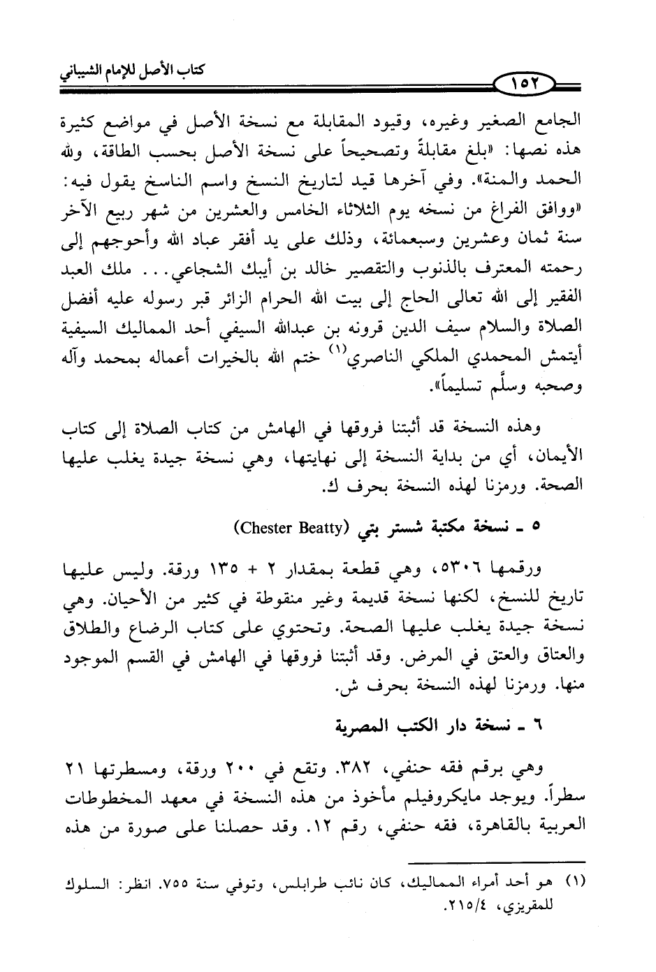 وهذه النسخة قد أثبتنا فروقها في الهامش من كتاب الصلاة إلى كتاب الأيمان، أي من بداية النسخة إلى نهايتها، وهي نسخة جيدة يغلب عليها الصحة. ورمزنا لهذه النسخة بحرف ك.