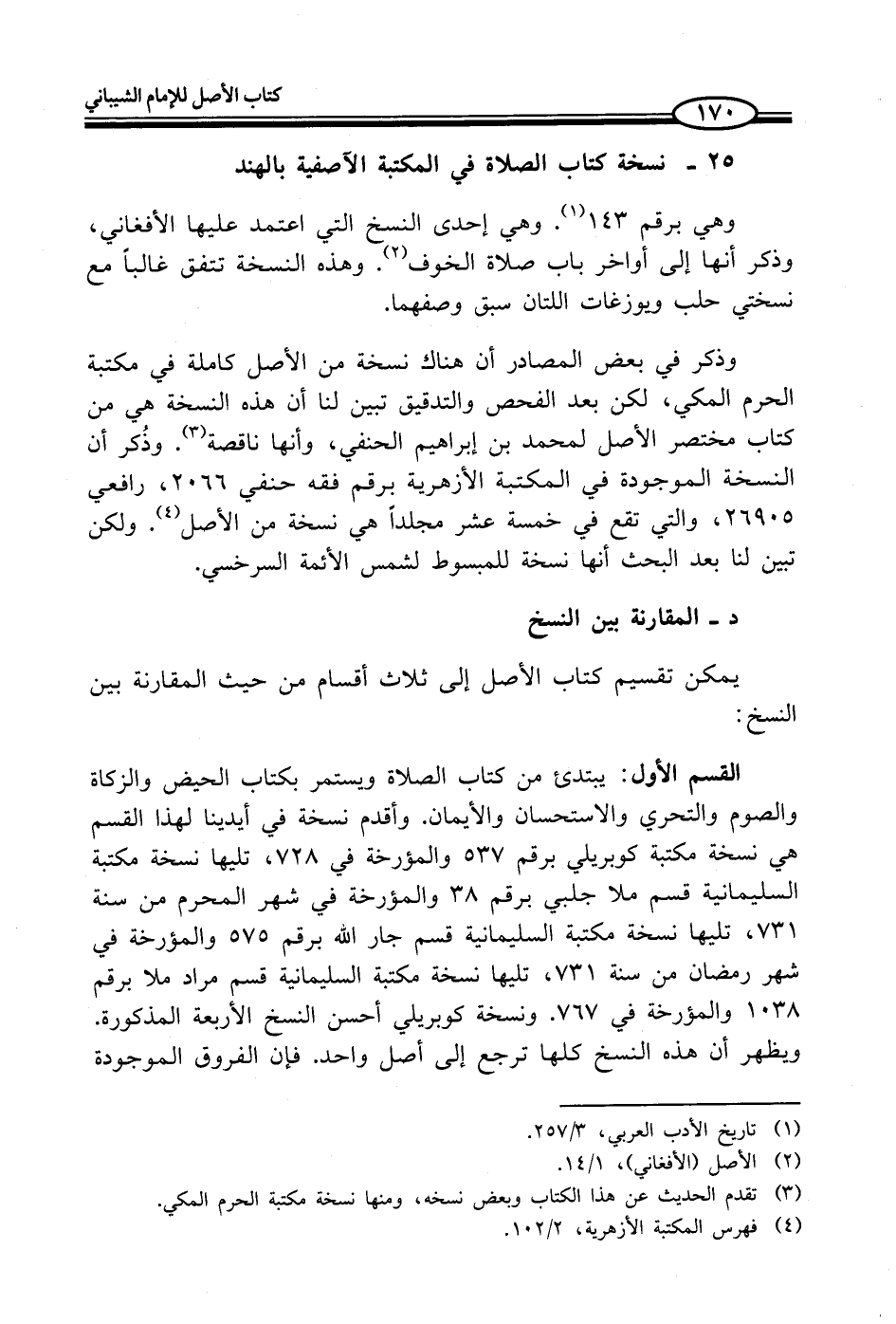 (¬2) الأصل (الأفغاني)، 1/ 14.