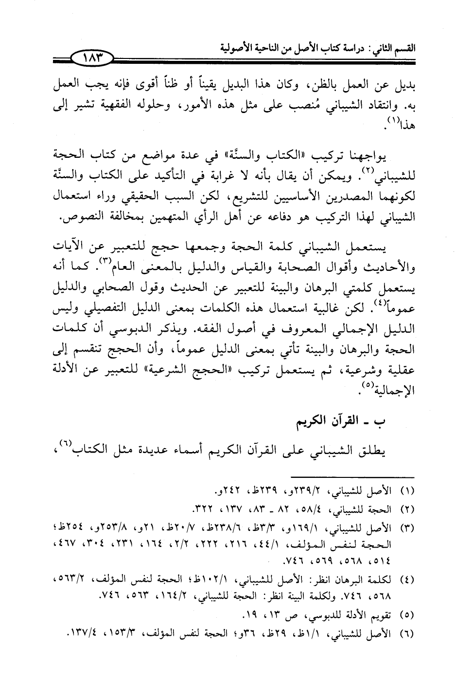 (¬4) لكلمة البرهان انظر: الأصل للشيباني، 1/ 102 ظ؛ الحجة لنفس المؤلف، 2/ 563، 568, 746. ولكلمة البينة انظر: الحجة للشيباني، 2/ 164، 563. 746.