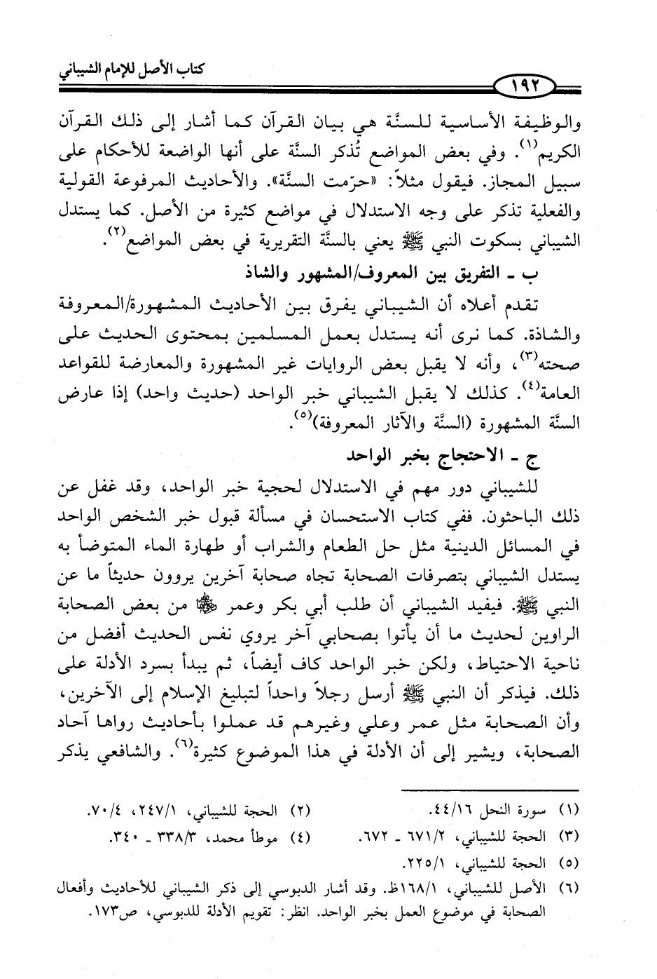(¬6) الأصل للشيباني، 1/ 168 ظ. وقد أشار الدبوسي إلى ذكر الثيباني للأحاديث وأفعال الصحابة في موضوع العمل بخبر الواحد. انظر: تقويم الأدلة للدبوسي، ص 173.
