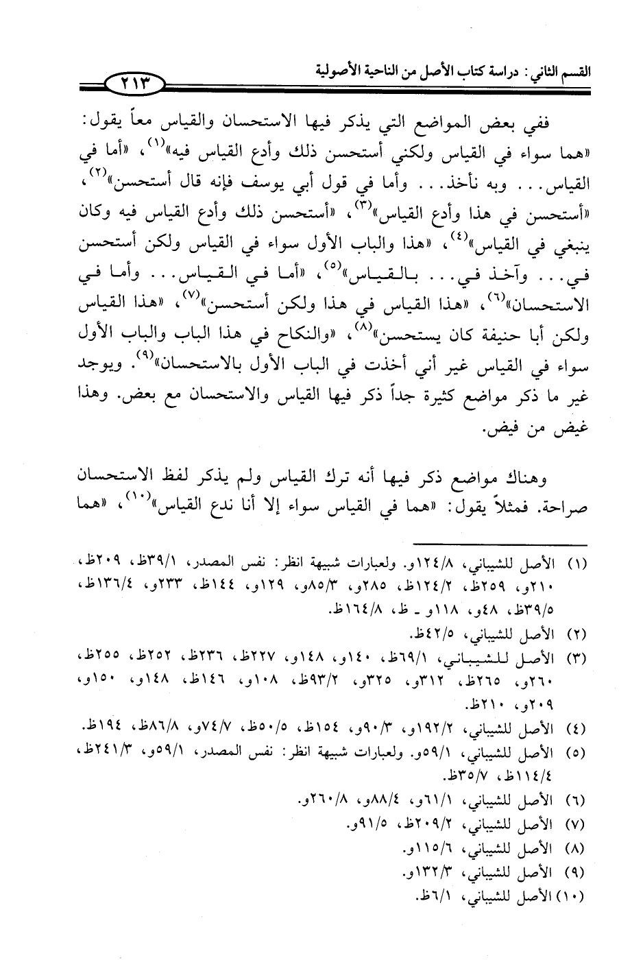 (¬1) الأصل للشيباني، 8/ 124 و. ولعبارات شبيهة انظر: نفس المصدر، 1/ 39 ظ، 209 ظ، 210 و، 259 ظ، 285 و، 2/ 124 ظ، 285 و، 3/ 85، 129 , 144 ظ, 233 و، 4/ 136 ظ، 5/ 39 ظ، 48 و، 118 و - ظ، 8/ 164 ظ.
