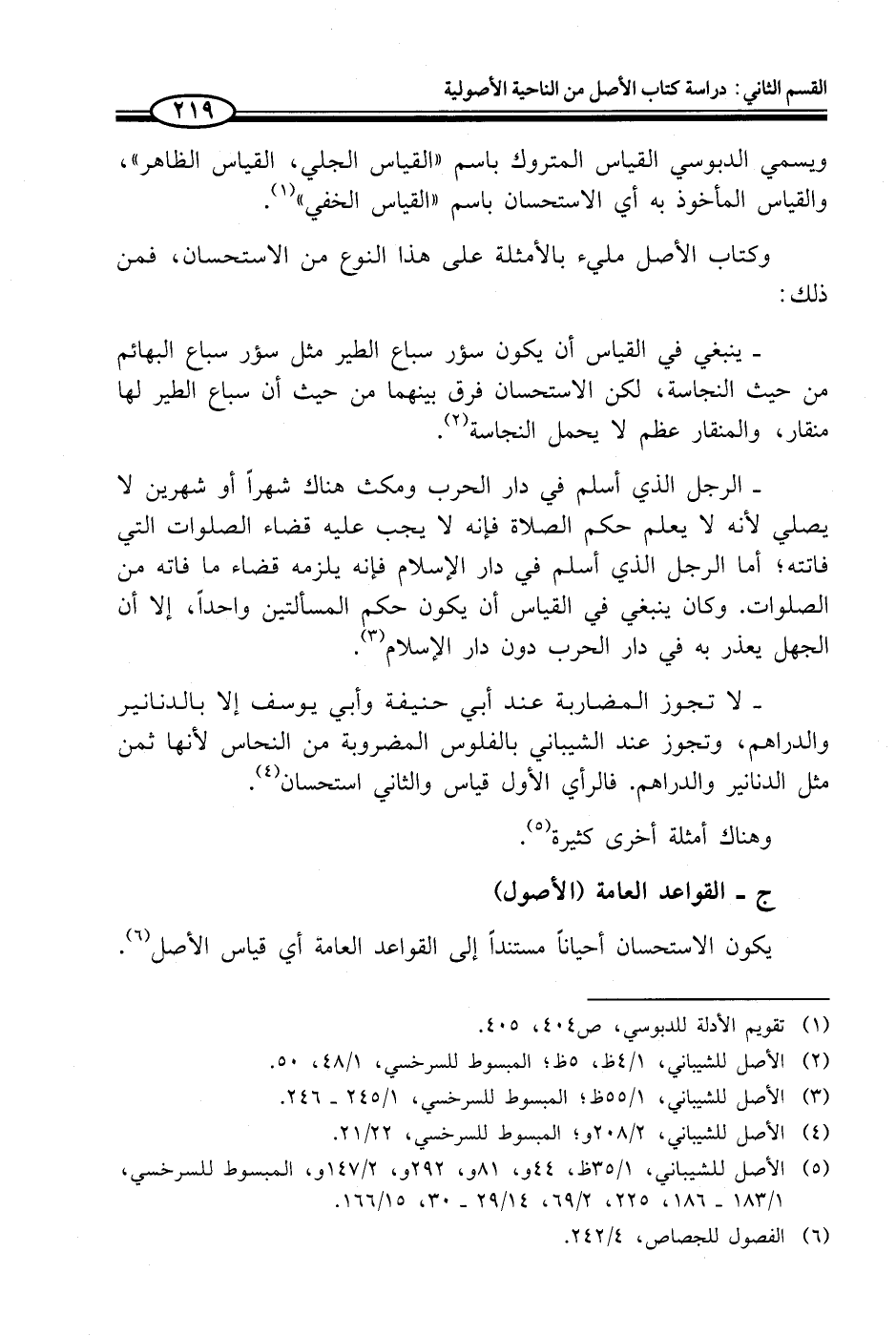 (¬5) الأصل للشيباني، 1/ 35 ظ، 44 و، 81 و، 292 و، 2/ 147 و، المبسوط للسرخسي، 1/ 183 - 186، 225، 2/ 69، 14/ 29 - 30، 15/ 166.