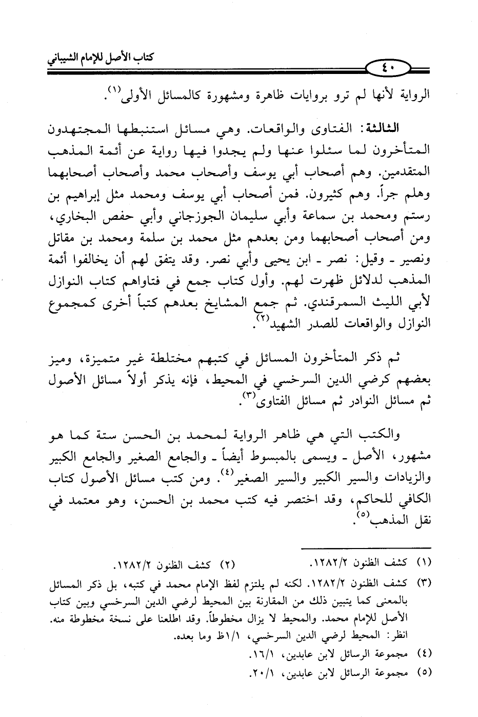 (¬3) كشف الظنون 2/ 1282. لكنه لم يلتزم لفظ الإمام محمد في كتبه، بل ذكر المسائل بالمعنى كما يتبين ذلك من المقارنة بين المحيط لرضي الدين السرخسي وبين كتاب الأصل للإمام محمد. والمحيط لا يزال مخطوطاً. وقد اطلعنا على نسخة مخطوطة منه. انظر: المحيط لرضي الدين السرخسي، 1/ 1 ظ وما بعده.