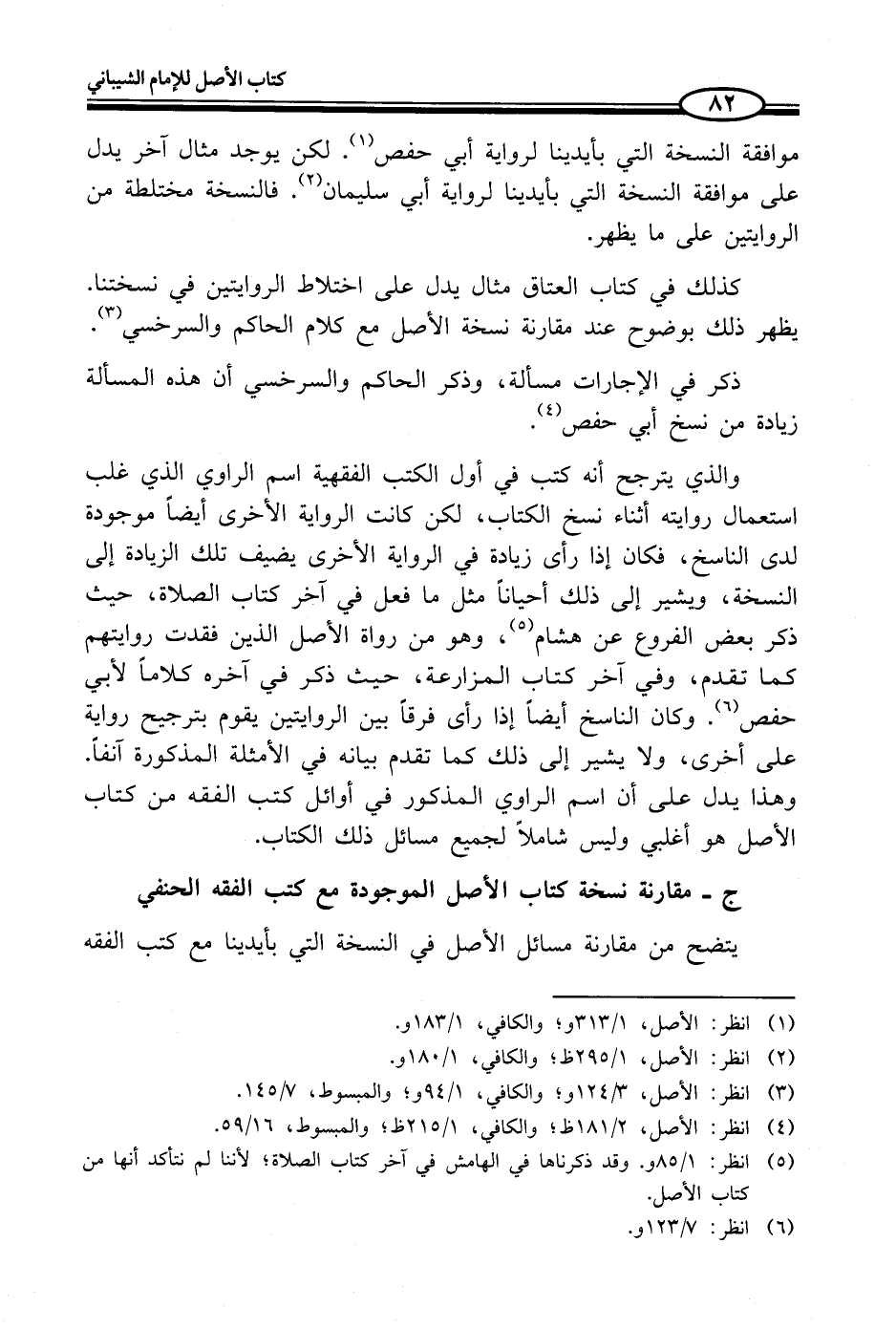 ج - مقارنة نسخة كتاب الأصل الموجودة مع كتب الفقه الحنفي
