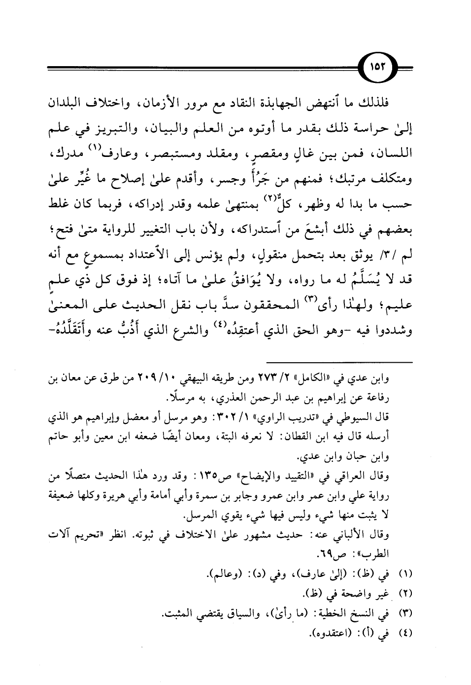فلذلك ما انتهض الجهابذة النقاد مع مرور الأزمان، واختلاف البلدان إلى حراسة ذلك بقدر ما أوتوه من العلم والبيان، والتبريز في علم اللسان، فمن بين غالٍ ومقصرٍ، ومقلد ومستبصر، وعارف (¬1) مدرك، ومتكلف مرتبك؛ فمنهم من جَرُأَ وجسر، وأقدم على إصلاح ما غُيِّر على حسب ما بدا له وظهر، كلٌّ (¬2) بمنتهى علمه وقدر إدراكه، فربما كان غلط بعضهم في ذلك أبشعَ من استدراكه، ولأن باب التغيير للرواية متى فتح؛ لم يوثق بعد بتحمل منقولٍ، ولم يونس إلى الاعتداد بمسموعٍ مع أنه قد لا يُسَلَّمُ له ما رواه، ولا يُوَافقُ على ما آتاه؛ إذ فوق كل ذي علمٍ عليم؛ ولهذا رأى (¬3) المحققون سدَّ باب نقل الحديث على المعنى وشددوا فيه - وهو الحق الذي أعتقِدُه (¬4) والشرع الذي أَذُبُّ عنه وأَتَقَلَّدُهُ -