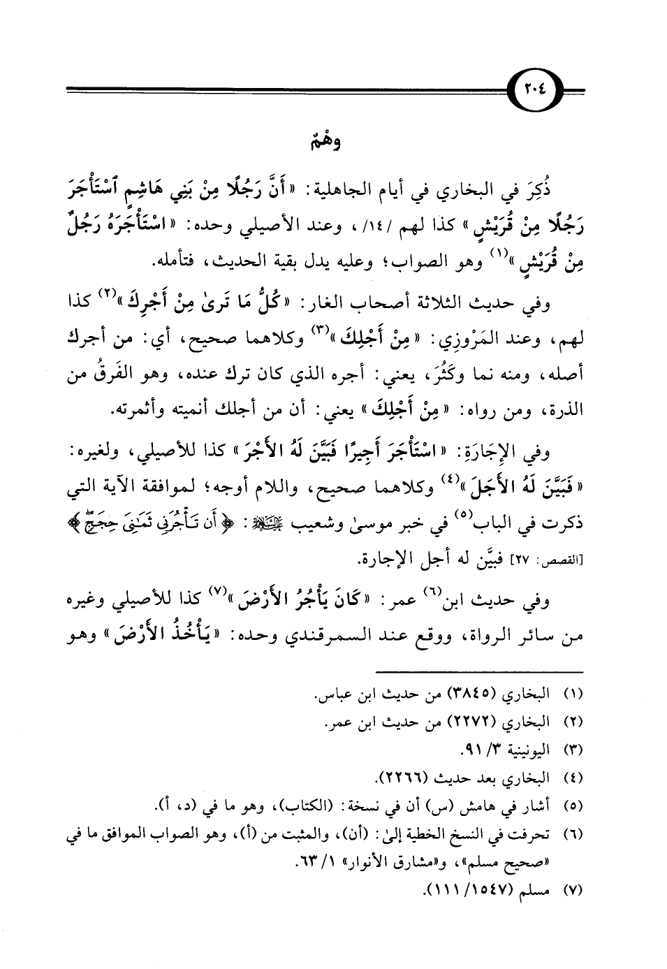 ذُكِرَ في البخاري في أيام الجاهلية: "أَنَّ رَجُلًا مِنْ بَنِي هَاشِمٍ اسْتَأْجَرَ رَجُلًا مِنْ قُرَيْشٍ" كذا لهم، وعند الأصيلي وحده: "اسْتَأْجَرَهُ رَجُلٌ مِنْ قُرَيْشٍ" (¬1) وهو الصواب؛ وعليه يدل بقية الحديث، فتأمله.