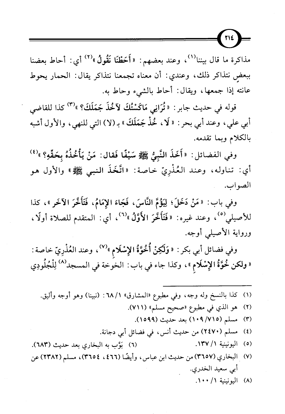 قوله في حديث جابر: "تُرَانِي مَاكسْتُكَ لآخُذَ جَمَلَكَ؟ " (¬3) كذا للقاضي أبي علي، وعند أبي بحر: "لَا، خُذْ جَمَلَكَ" بـ (لا) التي للنهي، والأول أشبه بالكلام وبما تقدمه.