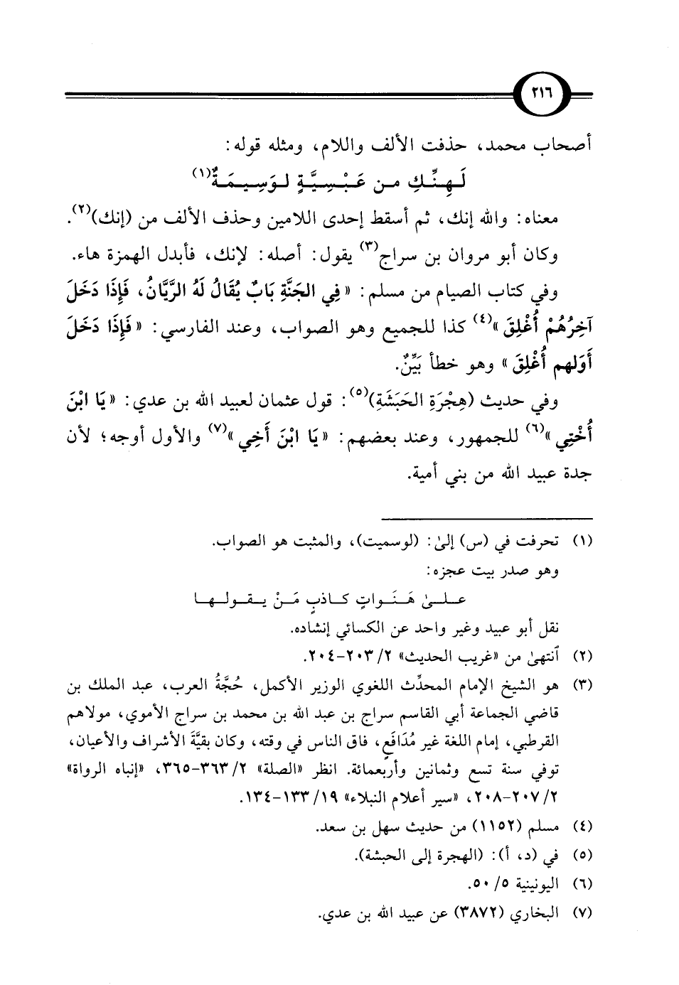 (¬3) هو الشيخ الإِمام المحدِّث اللغوي الوزير الأكمل، حُجَّةُ العرب، عبد الملك بن قاضي الجماعة أبي القاسم سراج بن عبد الله بن محمَّد بن سراج الأموي، مولاهم القرطبي، إمام اللغة غير مُدَافَعٍ، فاق الناس في وقته، وكان بقيَّةَ الأشراف والأعيان، توفي سنة تسع وثمانين وأربعمائة. انظر "الصلة" 2/ 363 - 365، "إنباه الرواة" 2/ 207 - 208، "سير أعلام النبلاء" 19/ 133 - 134.