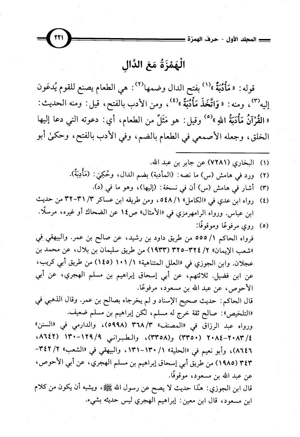(¬2) ورد في هامش (س) ما نصه: (المأدبة) بضم الدال، وحُكِيَ: (مَأْدِبَةٌ).