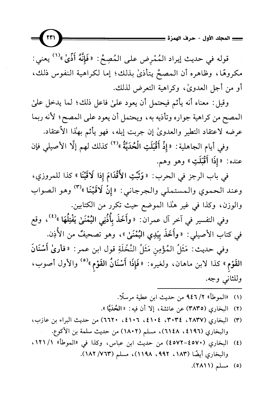 وفي التفسير في آخر آل عمران: "وأَخَذَ بِأُذُنِي اليُمْنَى يَفْتِلُهَا" (¬4)، وقع في كتاب الأصيلي: "وأَخَذَ بِيَدِي اليُمْنَى"، وهو تصحيفٌ من الأُذِن.