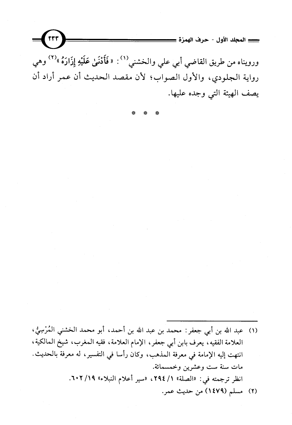 (¬1) عبد الله بن أبي جعفر: محمَّد بن عبد الله بن أحمد، أبو محمَّد الخشني المُرْسِيُّ، العلامة الفقيه، يعرف بابن أبي جعفر، الإِمام العلامة، فقيه المغرب، شيخ المالكية، انتهت إليه الإمامة في معرفة المذهب، وكان رأسا في التفسير، له معرفة بالحديث. مات سنة ست وعشرين وخمسمائة. انظر ترجمته في: "الصلة" 1/ 294، "سير أعلام النبلاء" 19/ 602.