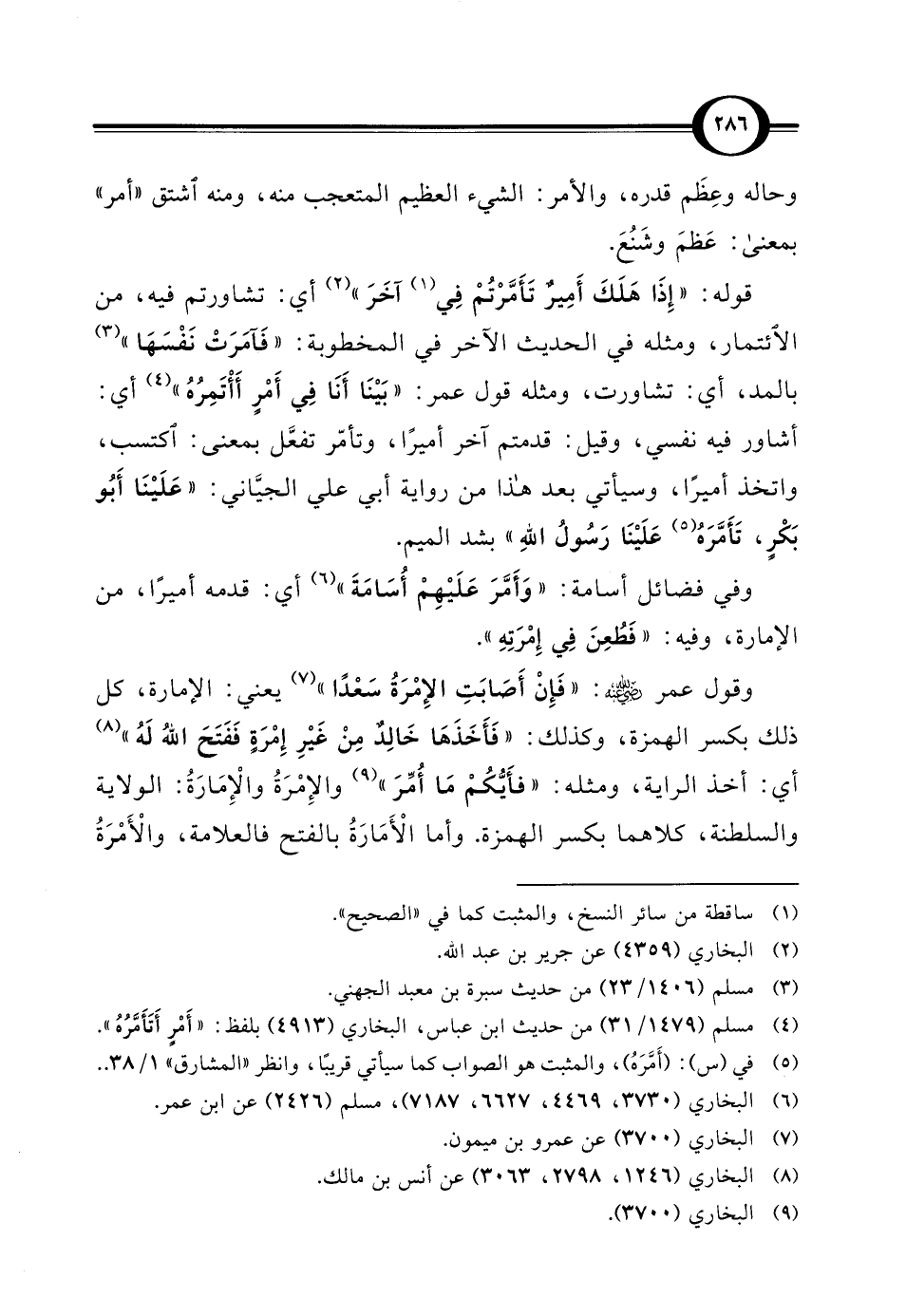 وفي فضائل أسامة: "وَأَمَّرَ عَلَيْهِمْ أُسَامَةَ" (¬6) أي: قدمه أميرًا، من الإمارة، وفيه: "فَطُعِنَ في إِمْرَتِهِ".