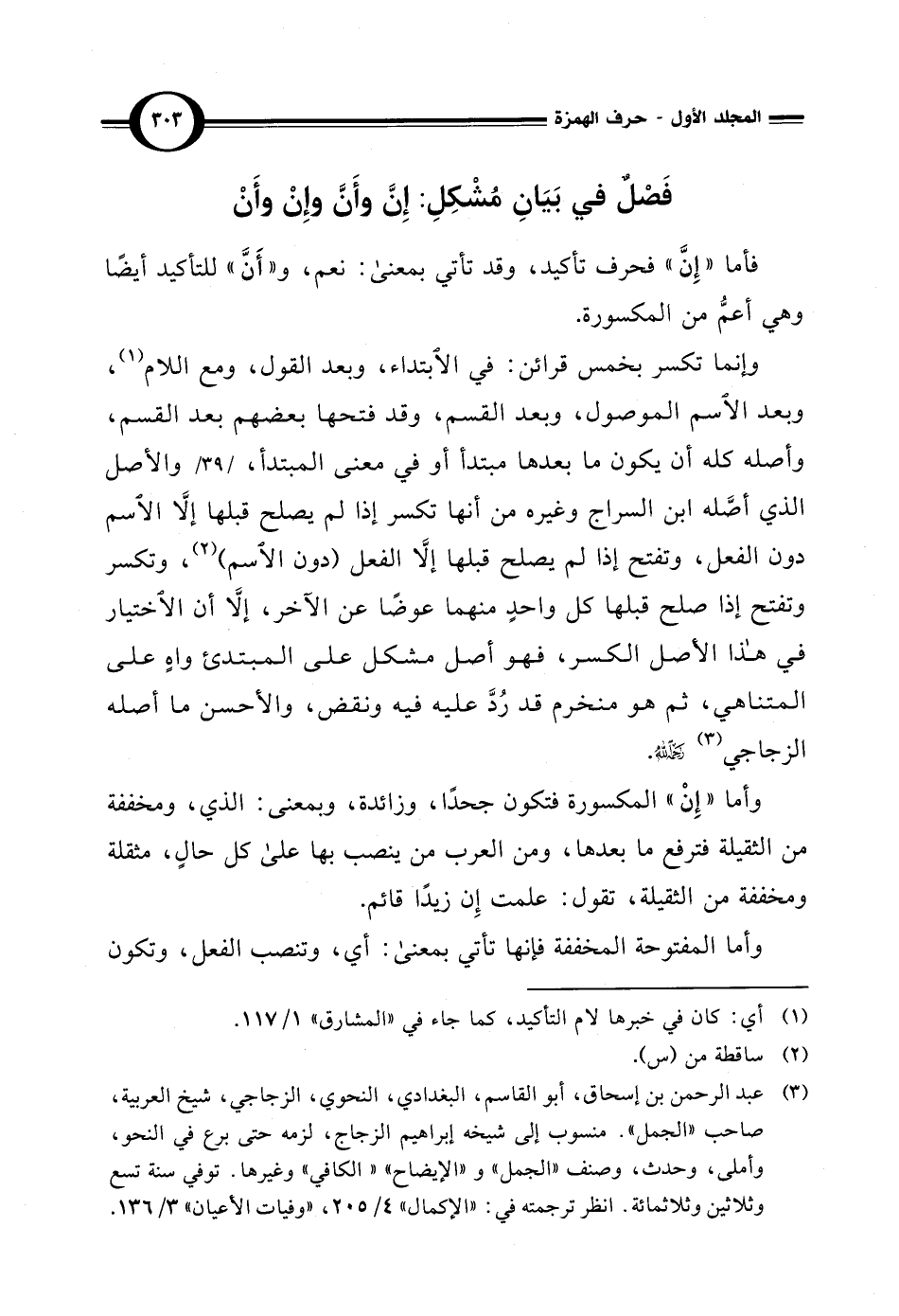 فَصْلٌ في بَيَانِ مُشْكِلِ: إِنَّ وأَنَّ وإِنْ وأَنْ
