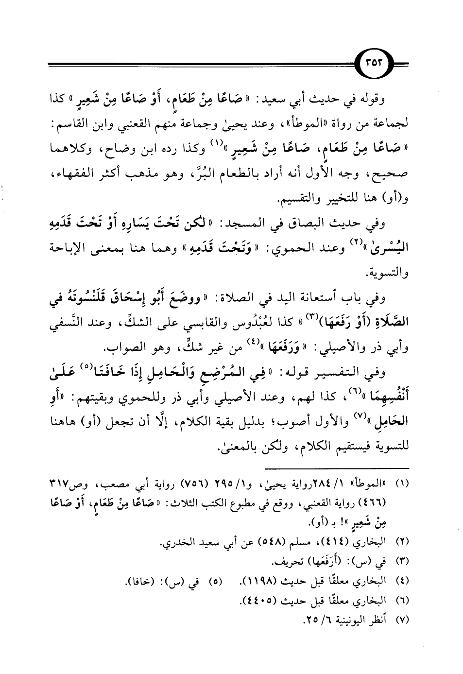 (¬1) "الموطأ" 1/ 284 رواية يحيى، و 1/ 295 (756) رواية أبي مصعب، وص 317 (466) رواية القعنبي، ووقع في مطبوع الكتب الثلاث: "صَاعًا مِنْ طَعَامٍ، أَوْ صَاعًا مِنْ شعِيرٍ"! بـ (أو).
