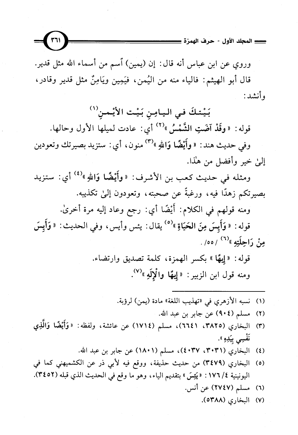 (¬1) نسبه الأزهري في "تهذيب اللغة" مادة (يمن) لرؤبة.