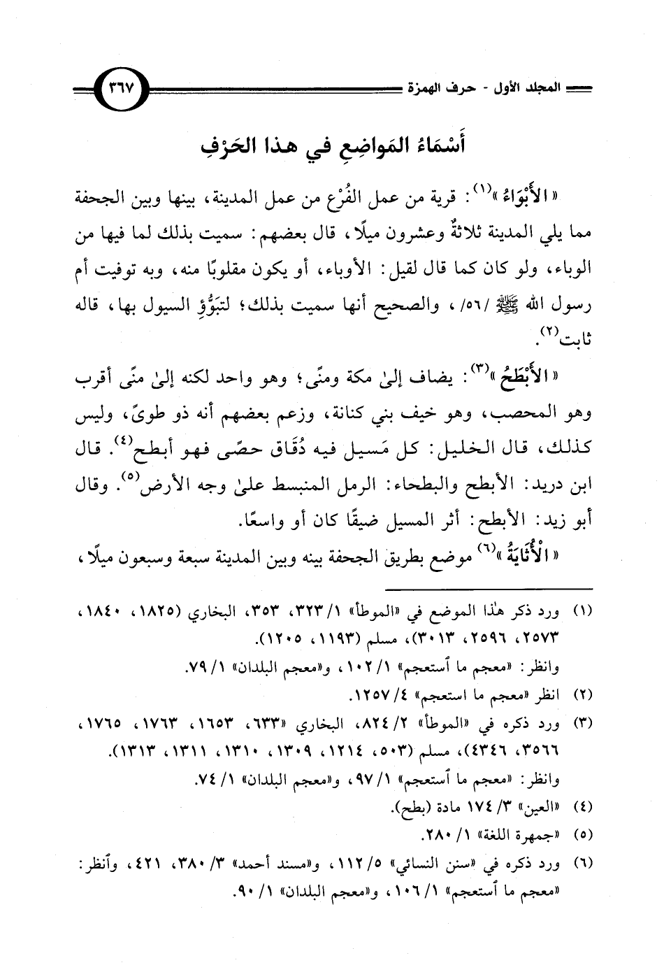(¬3) ورد ذكره في "الموطأ" 2/ 824، البخاري "633، 1653، 1763، 1765، 3566، 4346)، مسلم (503، 1214، 1309. 1310، 1311، 1313). وانظر: "معجم ما استعجم" 1/ 97، و"معجم البلدان" 1/ 74.