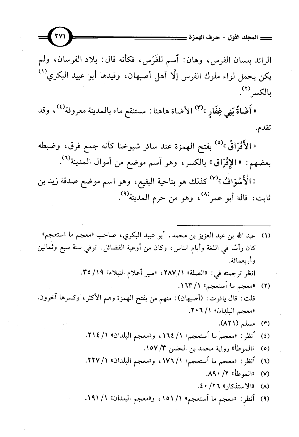 (¬9) انظر: "معجم ما استعجم" 1/ 151، و"معجم البلدان" 1/ 191.