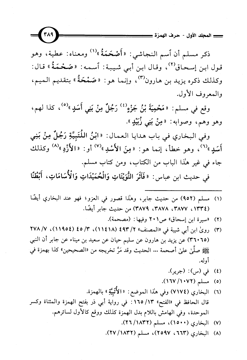 (¬3) روى ابن أبي شيبة في "المصنف" 2/ 493 (11418)، 3/ 45 (11954)، 7/ 278 (36065) عن يزيد بن هارون عن سليم حيان عن سعيد بن ميناء عن جابر أن النبي - صلى الله عليه وسلم - صلَّى على أصحمة ... الحديث وقد مَرَّ تخريجه من "الصحيحين" كذا بهمزة في أوله.