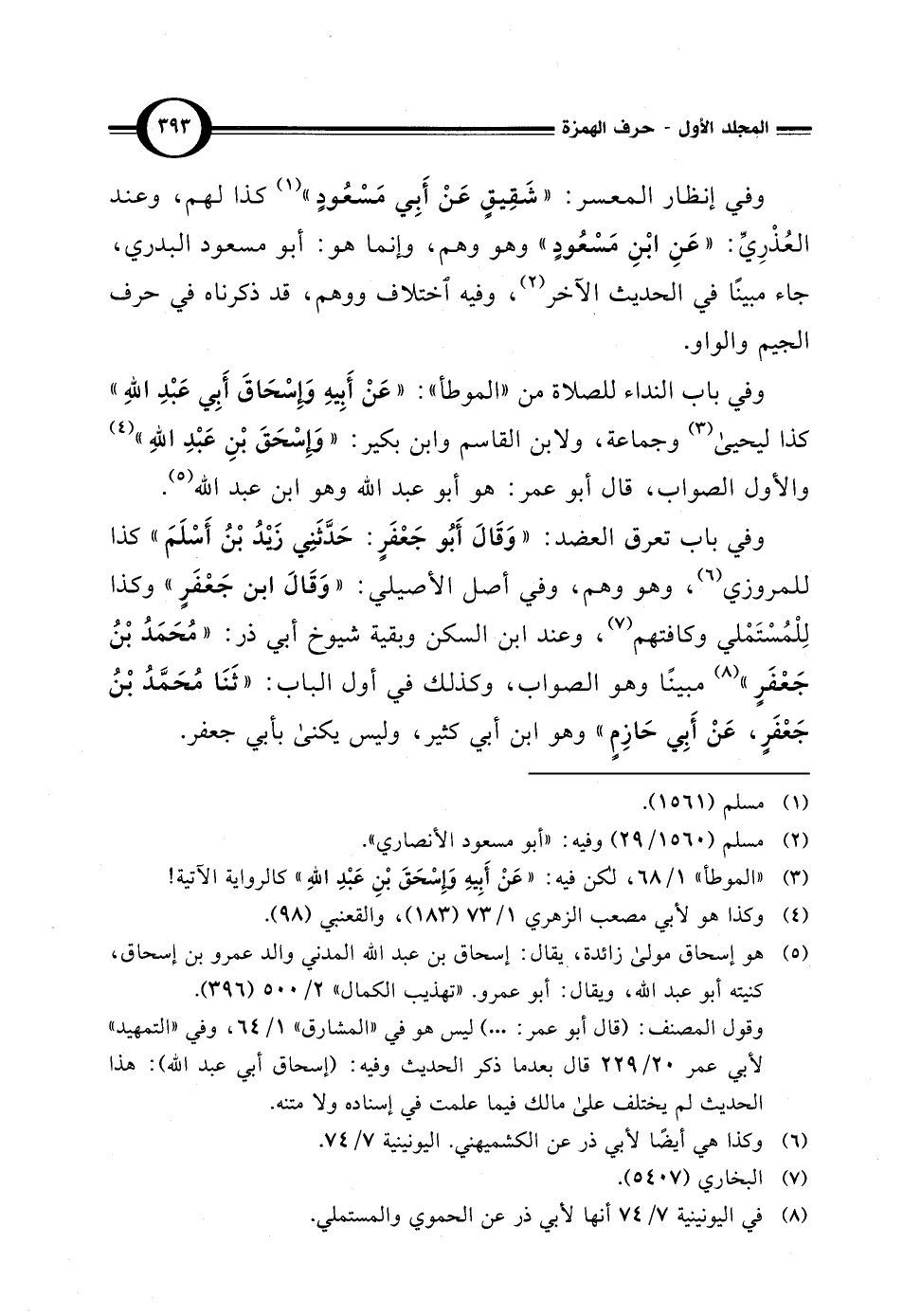 وفي باب النداء للصلاة من "الموطأ": "عَنْ أَبِيهِ وَإِسْحَاقَ أَبِي عَبْدِ اللهِ" كذا ليحيى (¬3) وجماعة، ولابن القاسم وابن بكير: "وَإِسْحَقَ بْنِ عَبْدِ اللهِ" (¬4) والأول الصواب، قال أبو عمر: هو أبو عبد الله وهو ابن عبد الله (¬5).