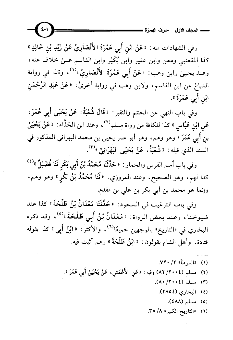 وفي باب الترغيب في السجود: "حَدَّثَنَا مَعْدَانُ بْنُ طَلْحَةَ" كذا عند شيوخنا، وعند بعض الرواة: "مَعْدَانُ بْنُ أَبِي طَلْحَةَ" (¬5)، وقد ذكره البخاري في "التاريخ" بالوجهين جميعًا (¬6)، والأكثر: "ابْنُ أَبِي" كذا يقوله قتادة، وأهل الشام يقولون: "ابْنُ طَلْحَةَ" وهم أثبت فيه.