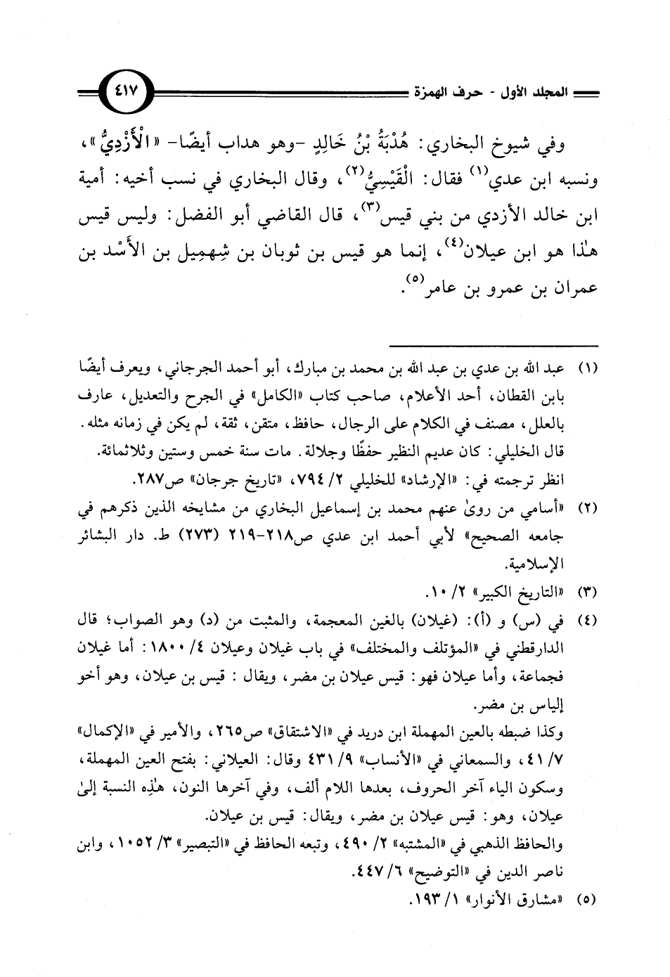 وفي شيوخ البخاري: هُدْبَةُ بْنُ خَالِدٍ - وهو هداب أيضًا - " الْازْدِيُّ"، ونسبه ابن عدي (¬1) فقال: الْقَيْسِيُّ (¬2)، وقال البخاري في نسب أخيه: أمية ابن خالد الأزدي من بني قيس (¬3)، قال القاضي أبو الفضل: وليس قيس هذا وابن عيلان (¬4)، إنما هو قيس بن ثوبان بن شِهمِيل بن الأَسْد بن عمران بن عمرو بن عامر (¬5).