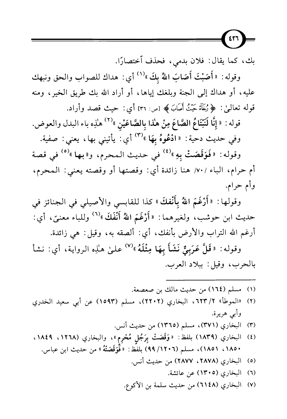 (¬4) البخاري (1839) بلفظ: "وَقَصَتْ بِرَجُلٍ مُحْرِمٍ"، والبخاري (1268، 1849، 1850، 1851)، مسلم (1206/ 99) بلفظ: "فوَقَصَتْهُ" من حديث ابن عباس.