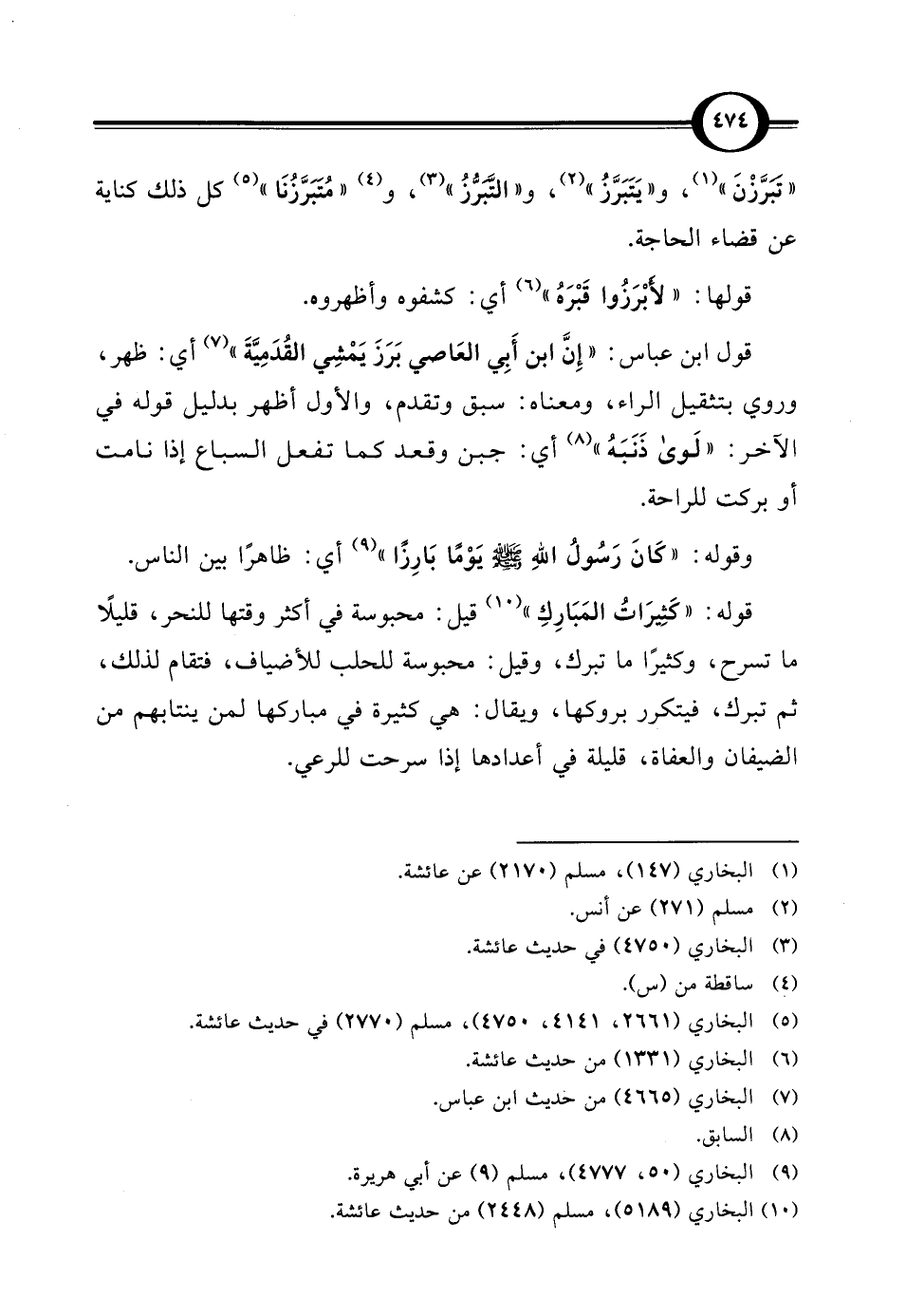 "تَبَرَّزْنَ" (¬1)، و"يَتَبَرَّزُ" (¬2)، و"التَّبَرُّزُ" (¬3)، و (¬4) "مُتَبَرَّزُنَا" (¬5) كل ذلك كناية عن قضاء الحاجة.