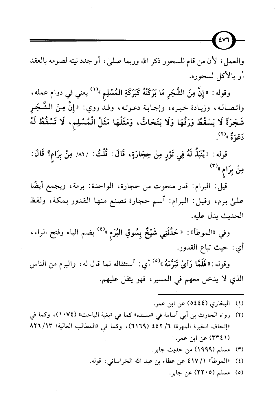 قوله: "يُنْبَذُ لَهُ فِي تَوْرٍ مِنْ حِجَارَةٍ، قَالَ: قُلْتُ: مِنْ بِرَامٍ؟ قَالَ: مِنْ بِرَامٍ" (¬3) قيل: البرام: قدر منحوت من حجارة، الواحدة: برمة، ويجمع أيضًا على برم، وقيل: البرام: اسم حجارة تصنع منها القدور بمكة، ولفظ الحديث يدل عليه.