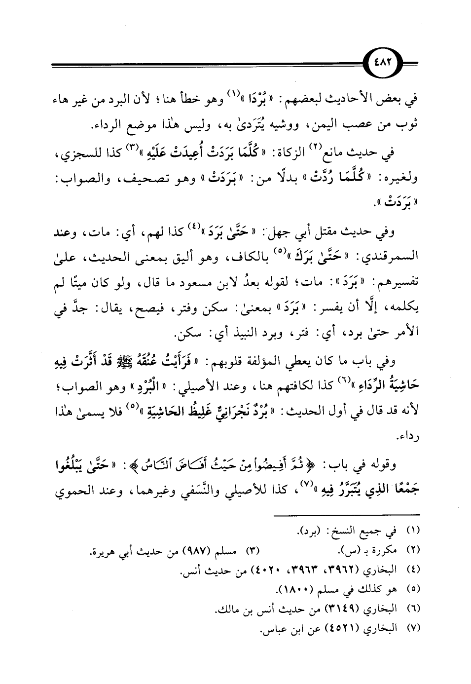 في حديث مانع (¬2) الزكاة: "كُلَّمَا بَرَدَتْ أُعِيدَتْ عَلَيْهِ" (¬3) كذا للسجزي، ولغيره: "كُلَّمَا رُدَّتْ" بدلًا من: "بَرَدَتْ" وهو تصحيف، والصواب: "بَرَدَتْ".