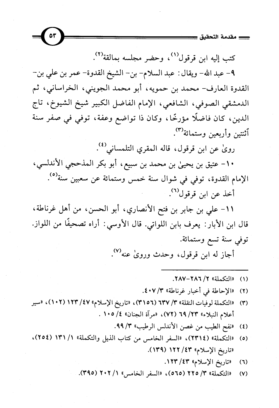 (¬7) "التكملة" 3/ 225 (565)، "السفر الخامس" 1/ 202 (395).