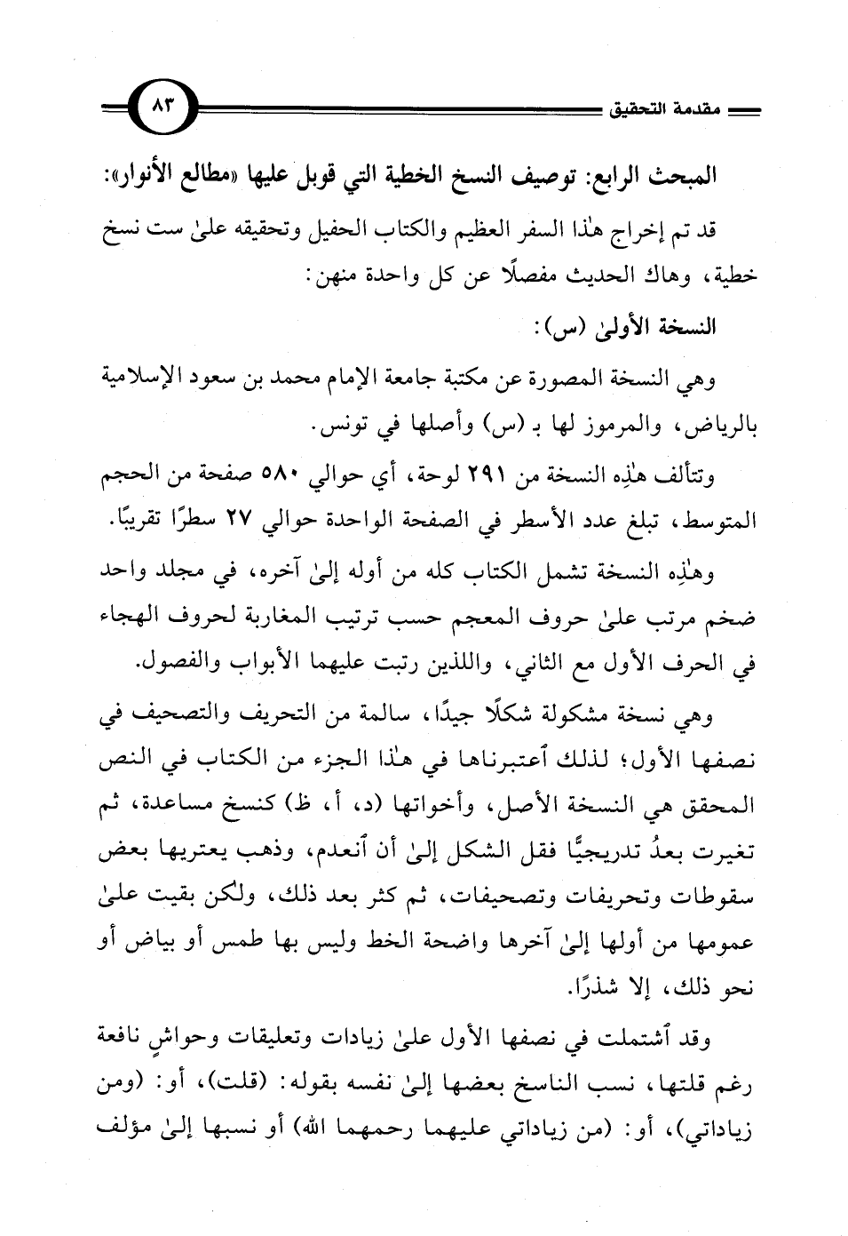 المبحث الرابع: توصيف النسخ الخطية التي قوبل عليها "مطالع الأنوار":