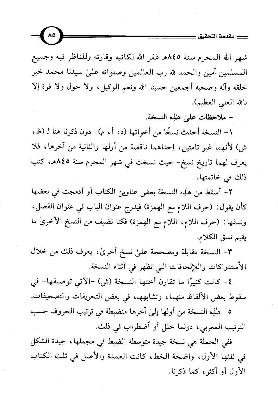 ففي الجملة هي نسخة جيدة متوسطة الضبط في مجملها، جيدة الشكل في ثلثها الأول، واضحة الخط، كانت العمدة والأصل في ثلث الكتاب الأول أو أكثر، كما ذكرنا.