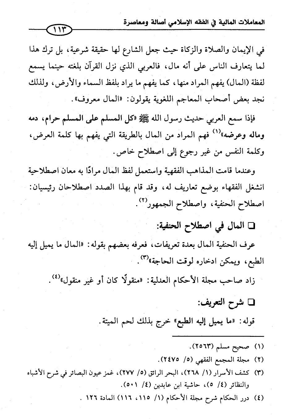 وعندما قامت المذاهب الفقهية واستعمل لفظ المال مرادًا به معان اصطلاحية انشغل الفقهاء بوضع تعاريف له، وقد قام بهذا الصدد اصطلاحان رئيسيان: اصطلاح الحنفية، واصطلاح الجمهور (¬٢).