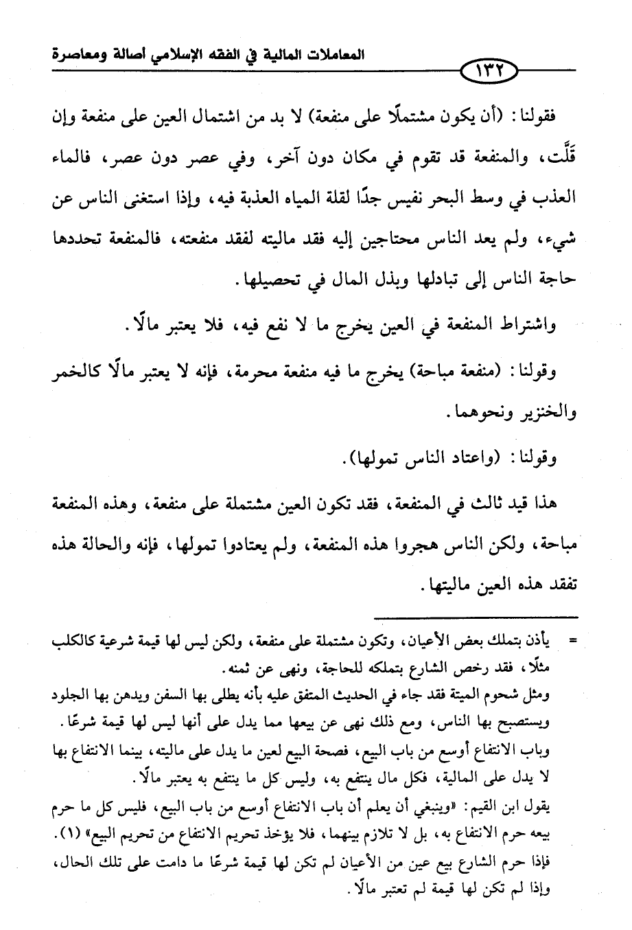 هذا قيد ثالث في المنفعة، فقد تكون العين مشتملة على منفعة، وهذه المنفعة مباحة، ولكن الناس هجروا هذه المنفعة، ولم يعتادوا تمولها، فإنه والحالة هذه تفقد هذه العين ماليتها.