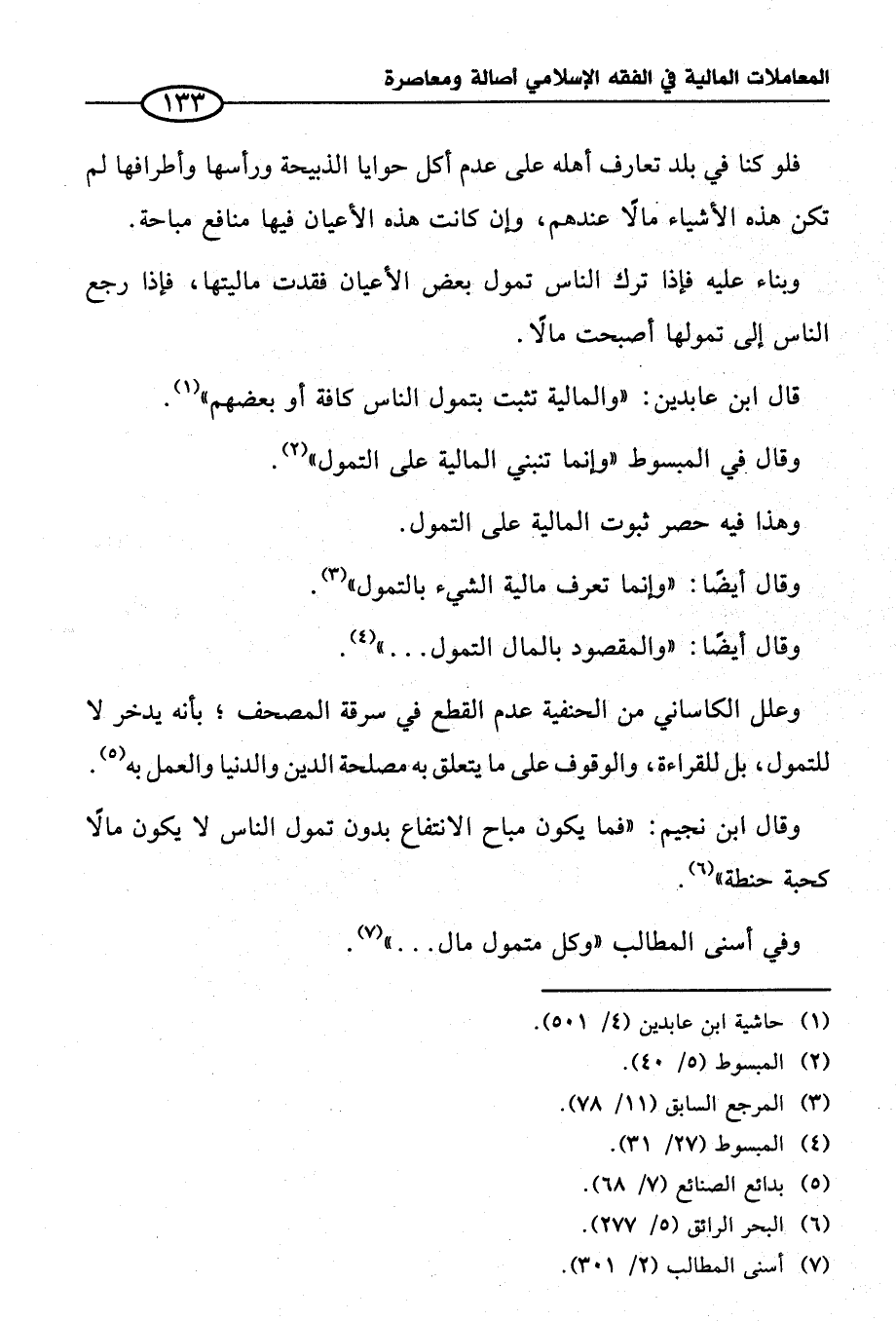 وقال أيضًا: "وإنما تعرف مالية الشيء بالتمول" (¬٣).
