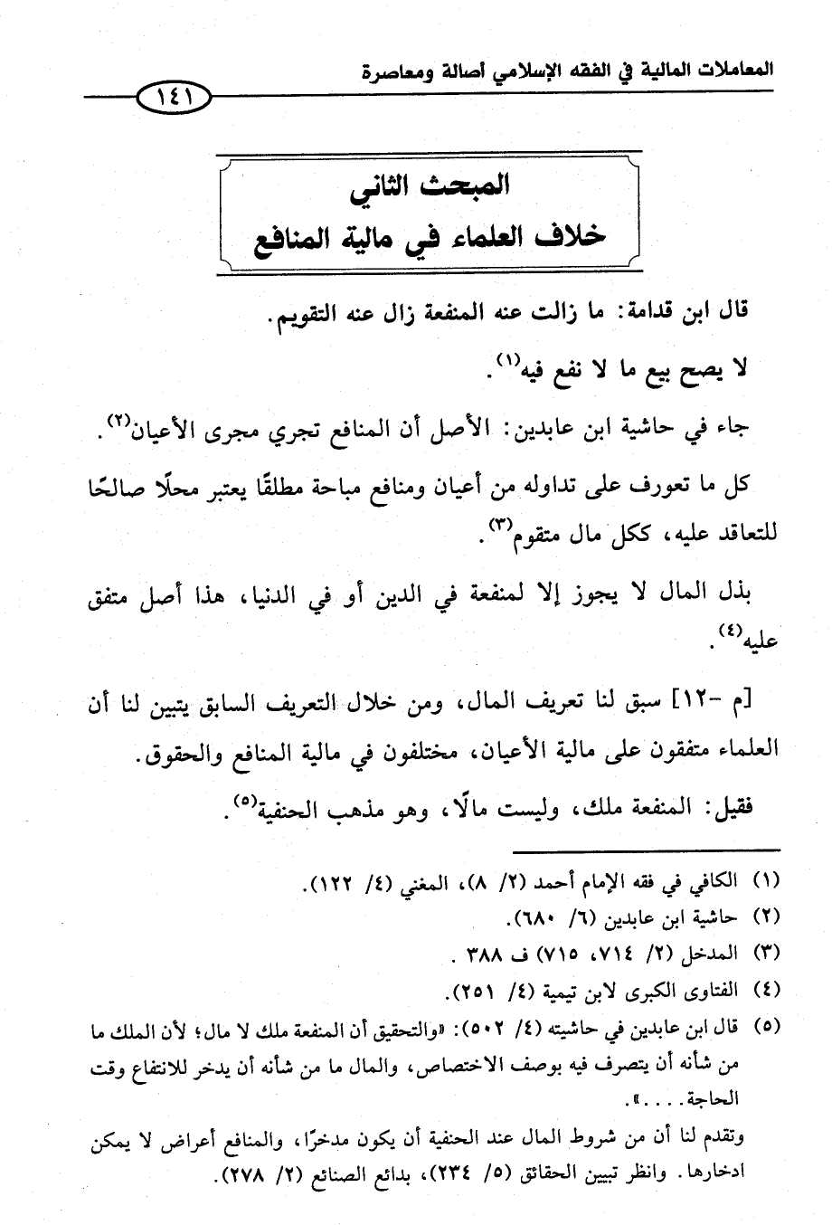 المبحث الثاني خلاف العلماء في مالية المنافع