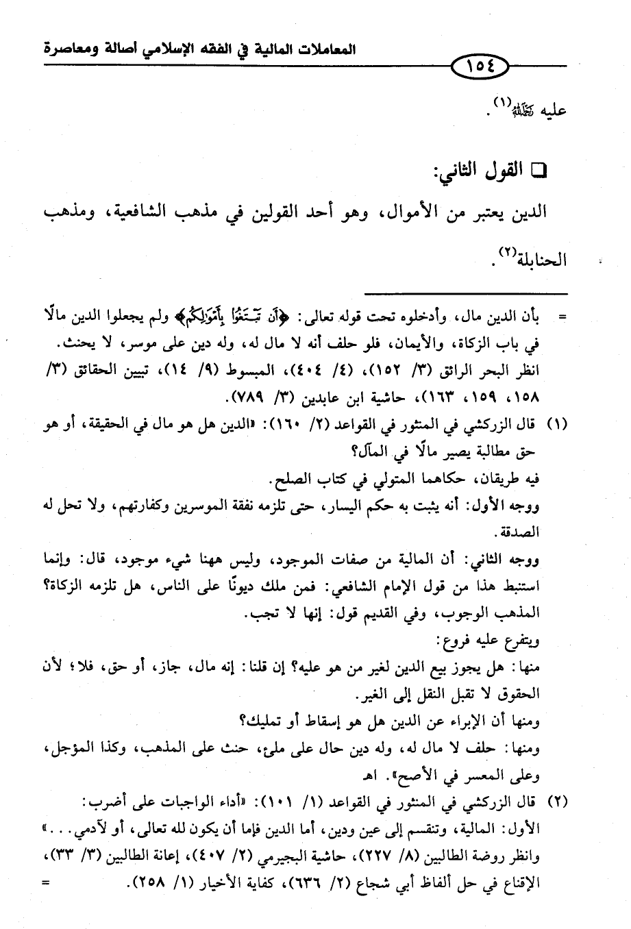 (¬١) قال الزركشي في المنثور في القواعد (٢/ ١٦٠): "الدين هل هو مال في الحقيقة، أو هو حق مطالبة يصير مالًا في المآل؟