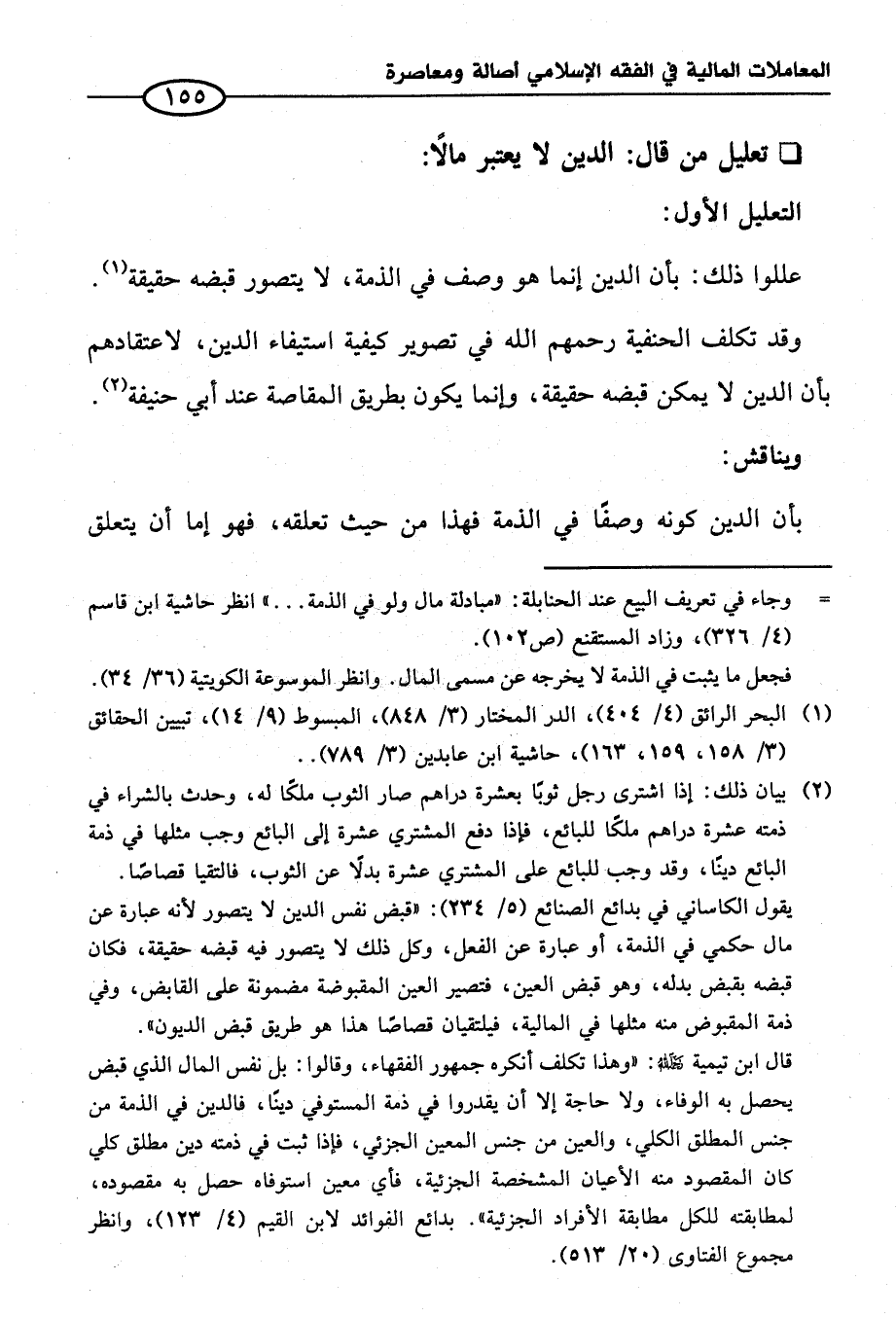 * تعليل من قال: الدين لا يعتبر مالاً: