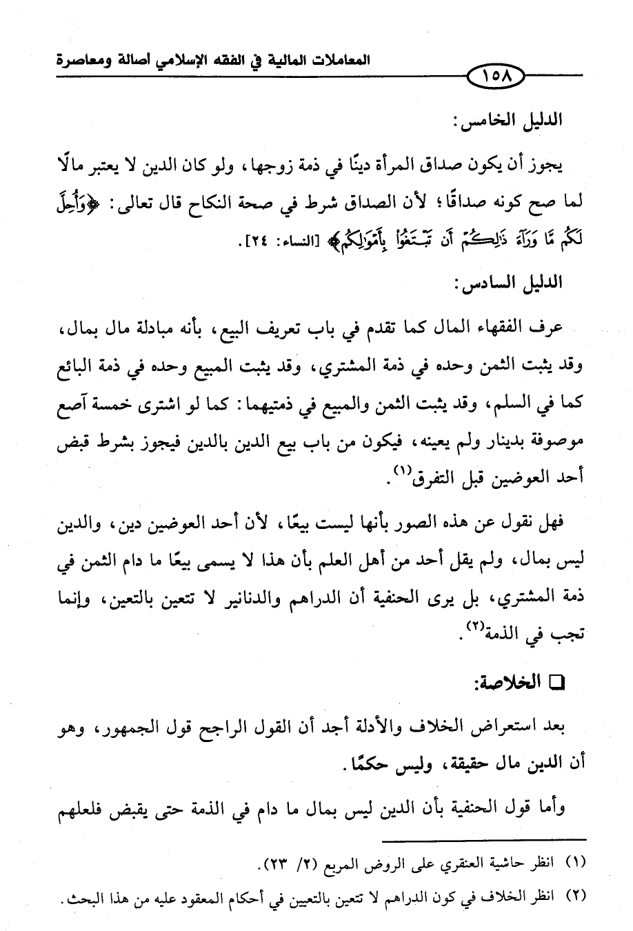 فهل نقول عن هذه الصور بأنها ليست بيعًا؛ لأن أحد العوضين دين، والدين ليس بمال، ولم يقل أحد من أهل العلم بأن هذا لا يسمى بيعًا ما دام الثمن في ذمة المشتري، بل يرى الحنفية أن الدراهم والدنانير لا تتعين بالتعين، وإنما تجب في الذمة (¬٢).