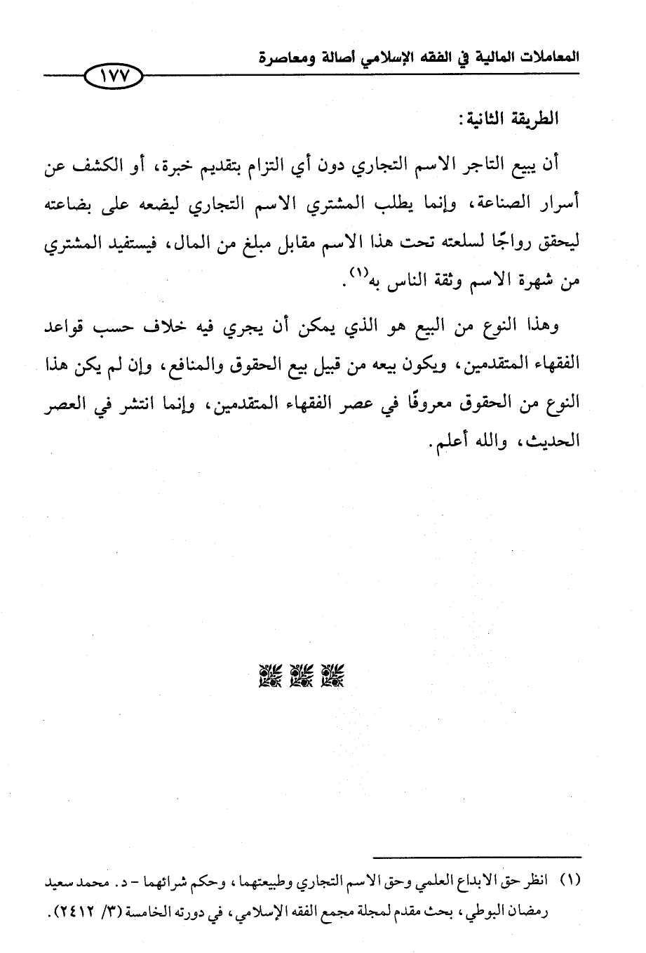 (¬١) انظر حق الإبداع العلمي وحق الاسم التجاري وطبيعتهما، وحكم شرائهما - د. محمَّد سعيد رمضان البوطي، بحث مقدم لمجلة مجمع الفقه الإِسلامي، في دورته الخامسة (٣/ ٢٤١٢).