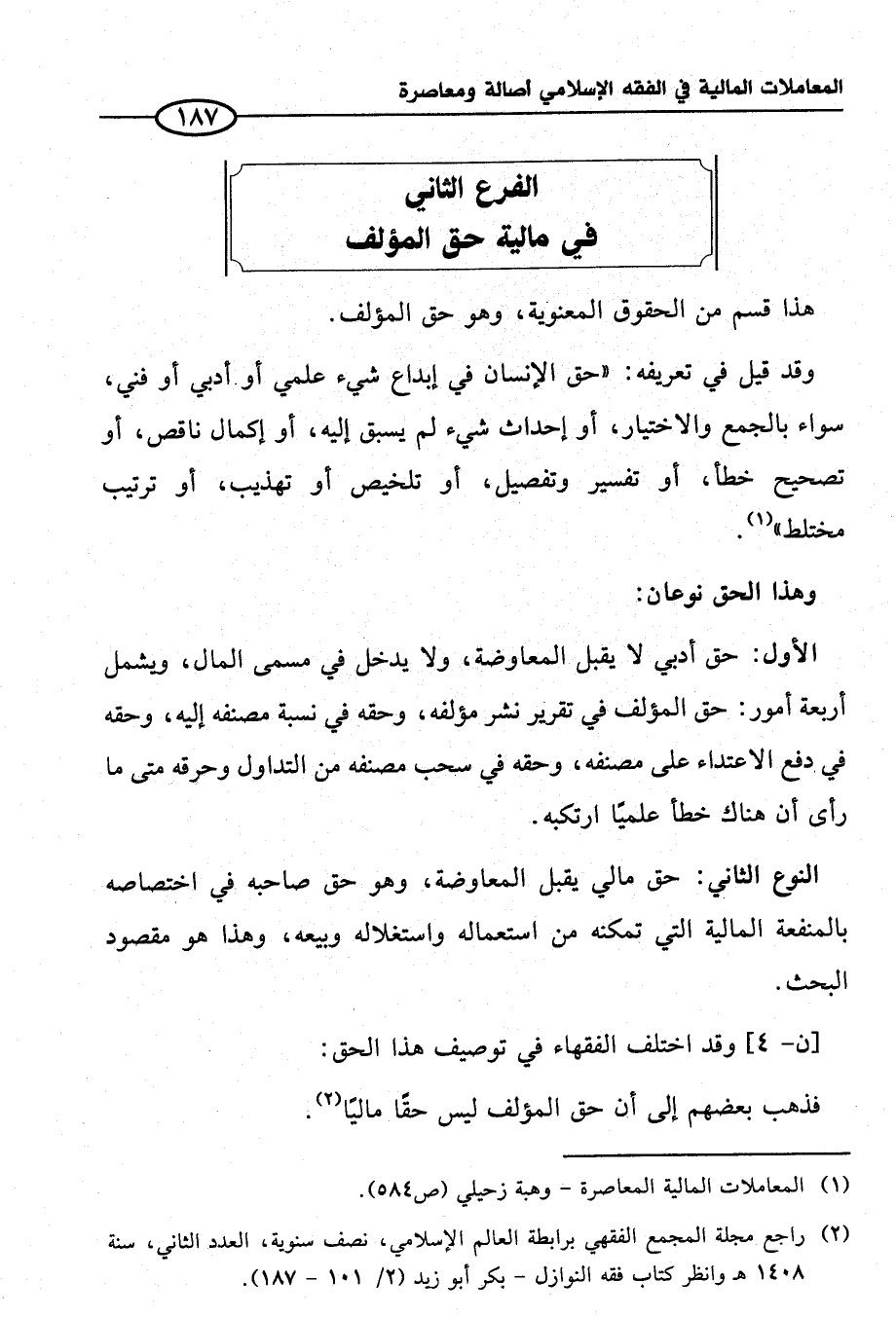 (¬١) المعاملات المالية المعاصرة - وهبة زحيلي (ص ٥٨٤).