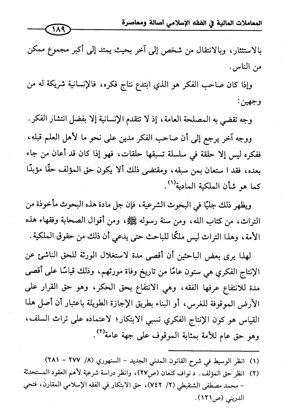 (¬٢) انظر حق المؤلف. د. نواف كنعان (ص ٢٧)، وانظر دراسة شرعية لأهم العقود المستحدثة - محمَّد مصطفى الشنقيطي (٢/ ٧٤٢)، حق الابتكار في الفقه الإِسلامي المقارن، فتحي الدريني (ص ١٢١).
