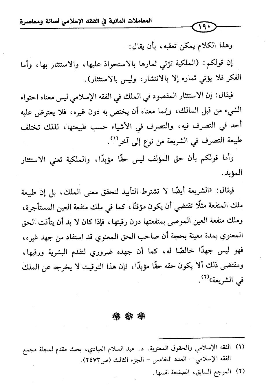 (¬١) الفقه الإِسلامي والحقوق المعنوية. د. عبد السلام العبادي، بحث مقدم لمجلة مجمع الفقه الإِسلامي - العدد الخامس - الجزء الثالث (ص ٢٤٧٣).