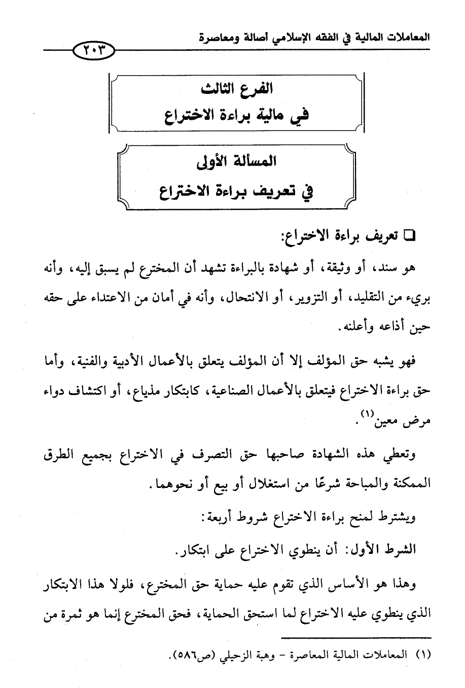 (¬١) المعاملات المالية المعاصرة - وهبة الزحيلي (ص ٥٨٦).