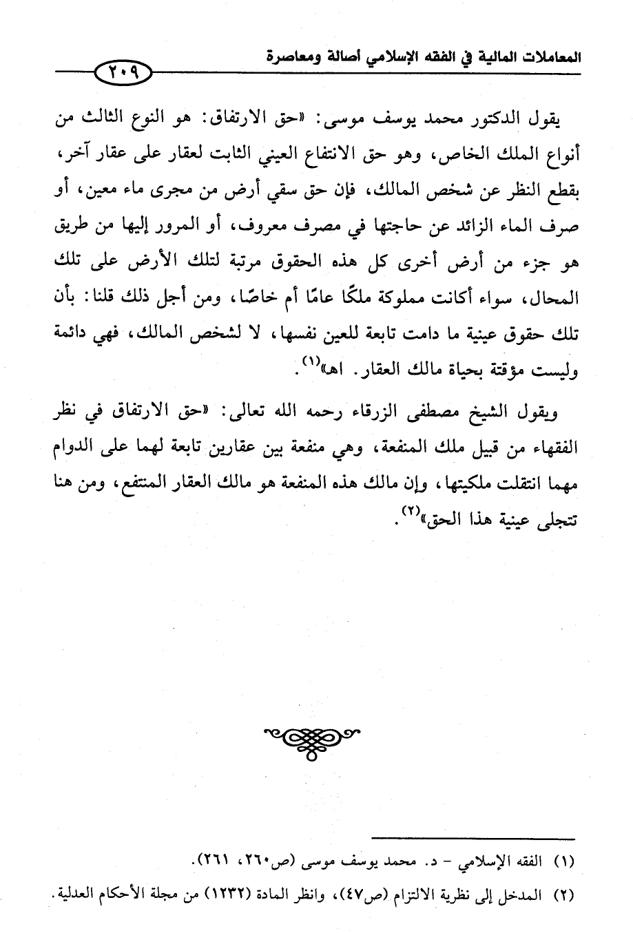 (¬١) الفقه الإسلامي - د. محمد يوسف موسى (ص٢٦٠، ٢٦١).