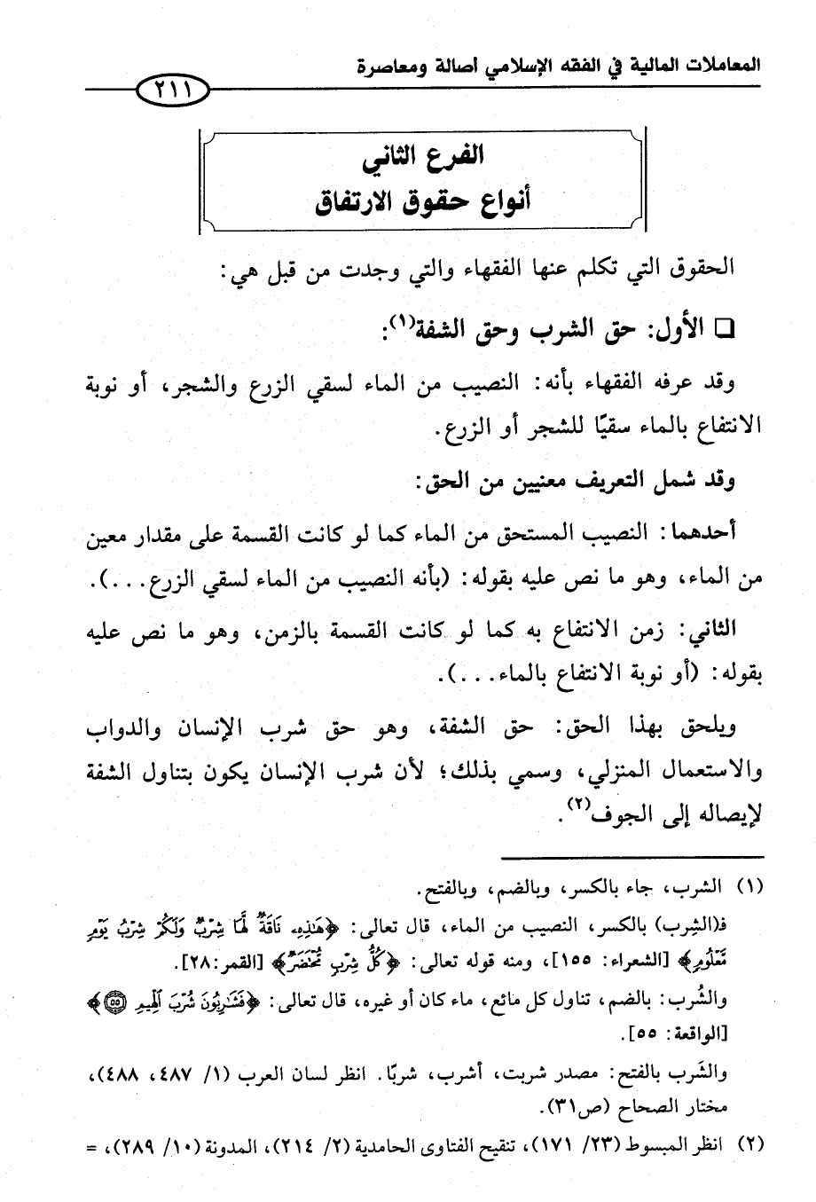 ويلحق بهذا الحق: حق الشفة، وهو حق شرب الإنسان والدواب والاستعمال المنزلي، وسمي بذلك؛ لأن شرب الإنسان يكون بتناول الشفة لإيصاله إلى الجوف (¬٢).