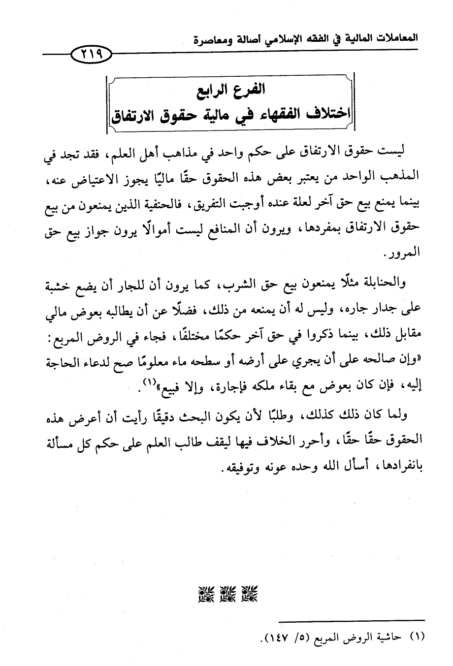 الفرع الرابع اختلاف الفقهاء في مالية حقوق الارتفاق