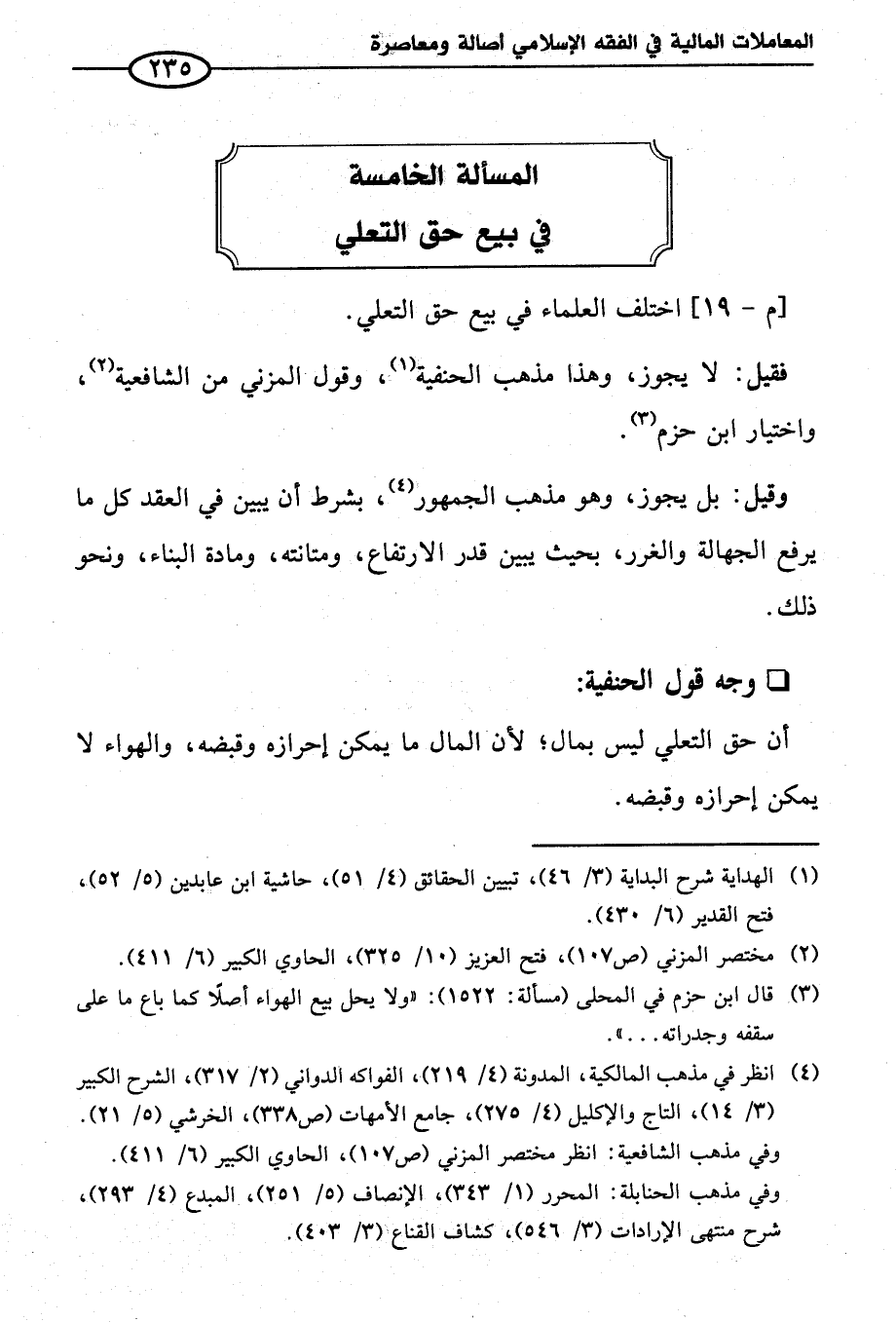 (¬٣) قال ابن حزم في المحلى (مسألة: ١٥٢٢): "ولا يحل بيع الهواء أصلا كما باع ما على سقفه وجدراته ... ".