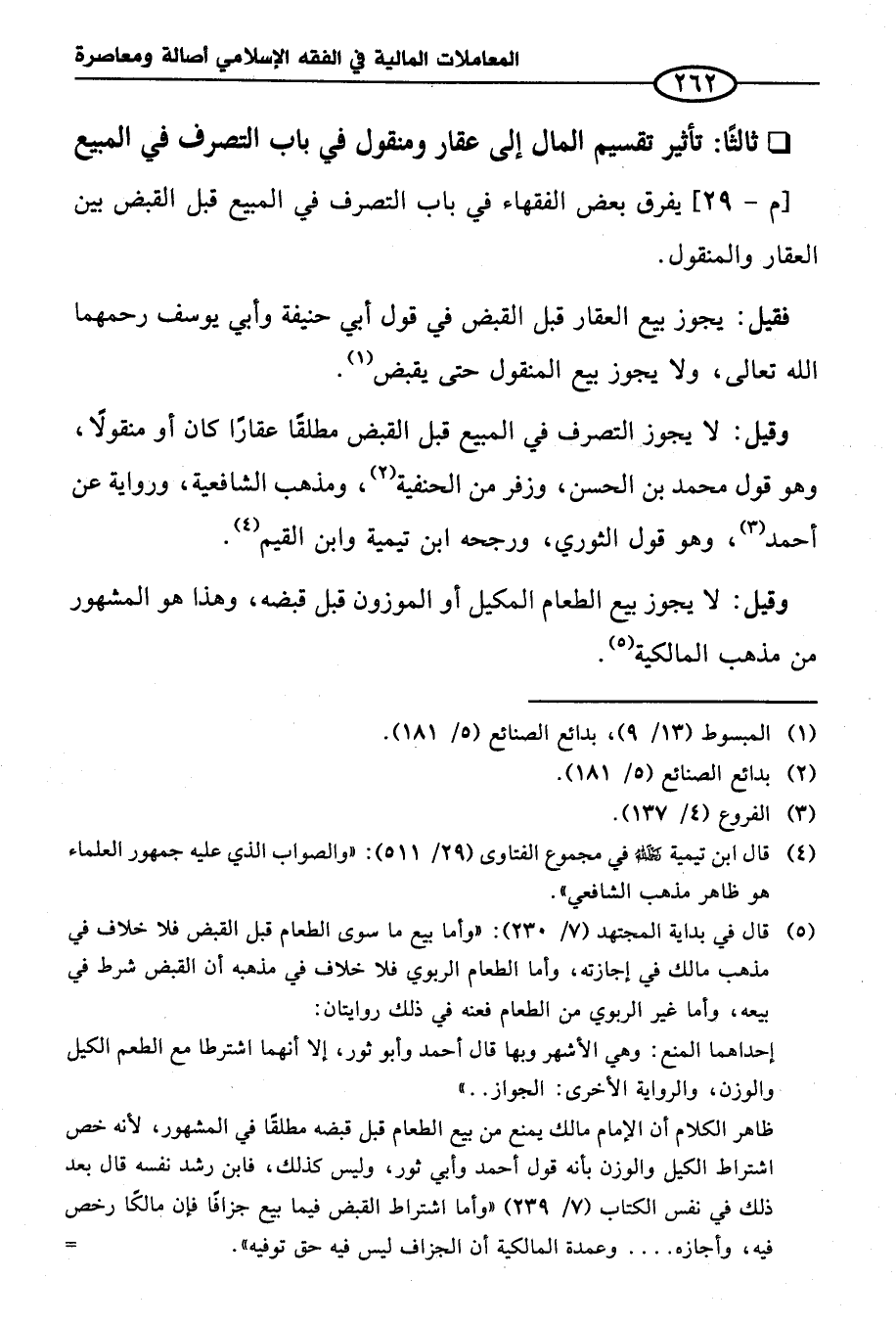[م - ٢٩] يفرق بعض الفقهاء في باب التصرف في المبيع قبل القبض بين العقار والمنقول.